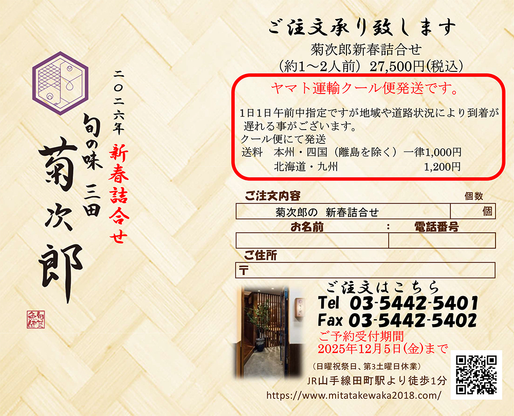 2026年「正月料理詰合せ」のご予約を開始致しました。